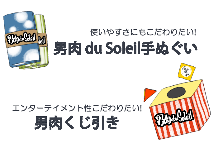 「ということで、男肉 du Soleilならでは、さらには今回の『お祭りフェスティバルまつり』ならではのグッズ販売にしたいんですが」